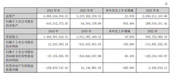 3月15日,光智科技发布2024年年报。营收、净利润双双大增,分别较2023年增长43.82%、105.09%,扣非净利润仍为亏损3716万元,较上年的扣非净利润-2.55亿大幅减亏。看起来业绩向好迹象明显,但值得注意的是经营活动产生的现金流量净额同比大幅下滑485.96%,为-1.59亿元。