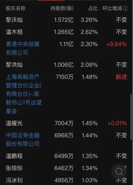 三季报显示,高毅资本在第三季度大幅买入温氏股份,新进其前十大流通股东名单,排名第五。