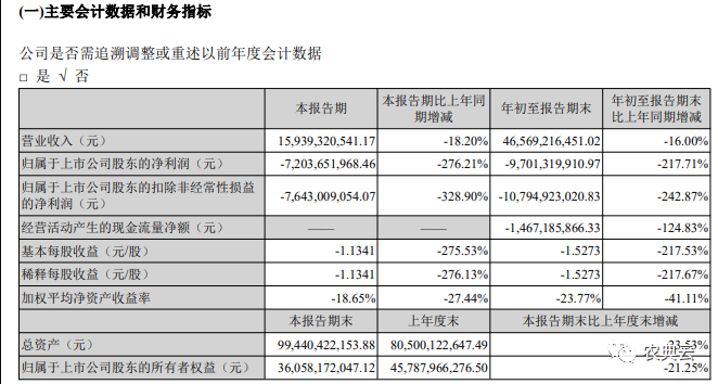 温氏股份第三季度亏损72亿元