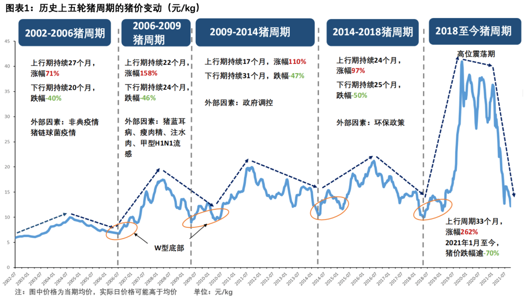 自2002年以来的五轮猪周期,每轮周期持续时间约3-4年。