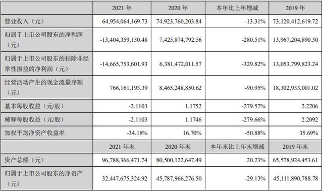 归属于上市公司股东的扣除非经常性损益的净亏损为146.66亿元。公司去年基本每股亏损2.11元。