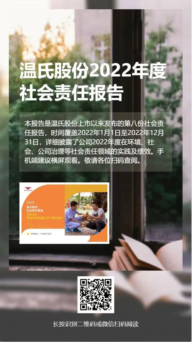 4月25日晚,温氏股份对外发布上市以来第八份社会责任报告,报告详细披露了温氏股份2022年度在环境、社会、公司治理等社会责任领域的实践及绩效。