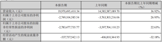 温氏股份同日披露的2023年一季度报告显示,报告期内,温氏股份营业收入199.70亿元,同比增长36.92%;归属于上市公司股东的净利润-27.49亿元,同比增长26.95%;归属于上市公司股东的扣除非经常性损益的净利润-27.83亿元,同比增长22.63%;经营活动产生的现金流量净额-5.39亿元,同比下降32.18%。