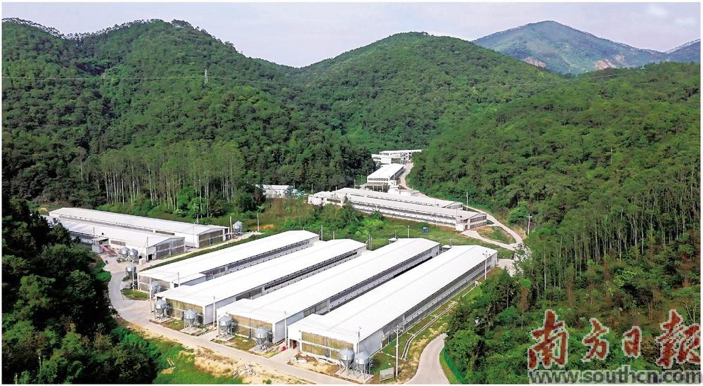 从“公司+农户”到“政银企村”共建,温氏联农带农的朋友圈不断扩大。图为车岗镇云卓面“政银企村”共建养殖小区。吴鑫摄