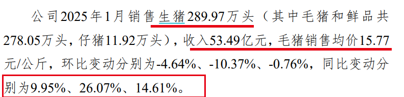 有此大幅度的增长,与温氏股份生猪统计口径变化不无关系。2025年1月起,公司调整了生猪销售统计口径,新增加了仔猪销量和仔猪收入。