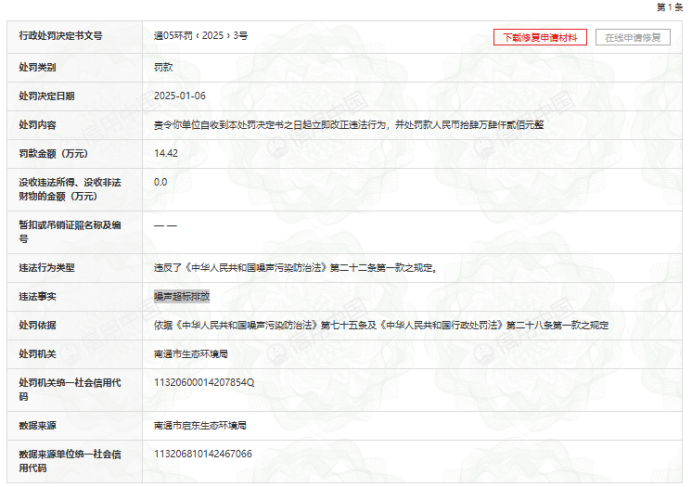 启东温氏畜牧有限公司因噪声超标排放被罚款14.42万元,且该公司在过去也曾因未经无害化处理的畜禽养殖废弃物直接向环境排放等问题被多次处罚;