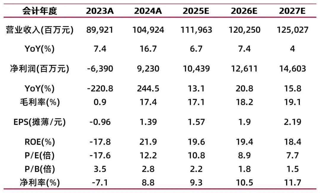 我们预计公司2025-2027年归母净利润104.39/126.11/146.03亿元,对应EPS为1.57/1.90/2.19元,当前股价对应2025年PE为11倍,维持“买入-B”评级。