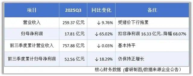 从财报数据看,第三季度259.37亿元的营收规模依然保持了行业龙头地位,但同比下滑的趋势不容忽视。更为关键的是,净利润的下降幅度远高于营收降幅,这一方面体现了生猪养殖行业成本刚性的特点,另一方面也反映出猪价波动对利润空间的挤压效应。