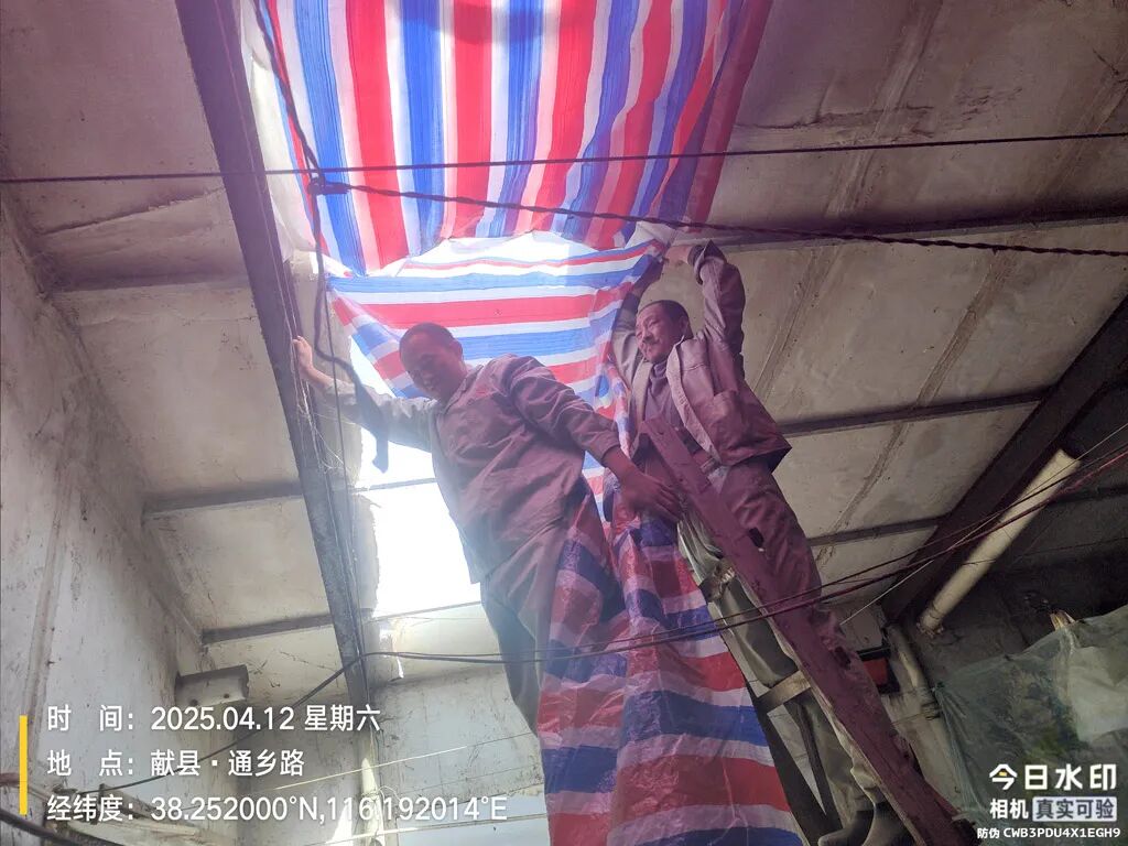 温氏献县服务部紧急帮助合作农户刘明进维修棚顶
