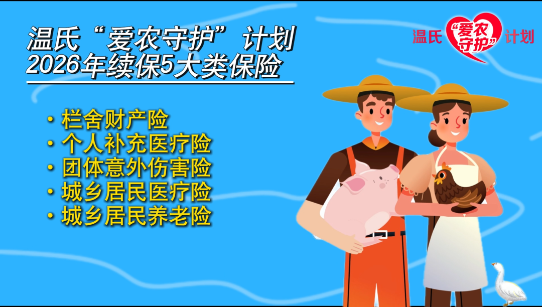 为践行联农带农、兴农富农的初心使命,持续巩固“公司+农户”合作模式,温氏股份已经启动了2026年度合作农户保险续保工作,继续为农户购买栏舍财产险、个人补充医疗险、团体意外伤害险、城乡居民医疗险、城乡居民养老险五大类保险。这份涵盖生产与生活的“五位一体”保障,正成为农户们安心养殖、踏实生活的坚实后盾。保险托底:让农户在灾害面前不再心慌