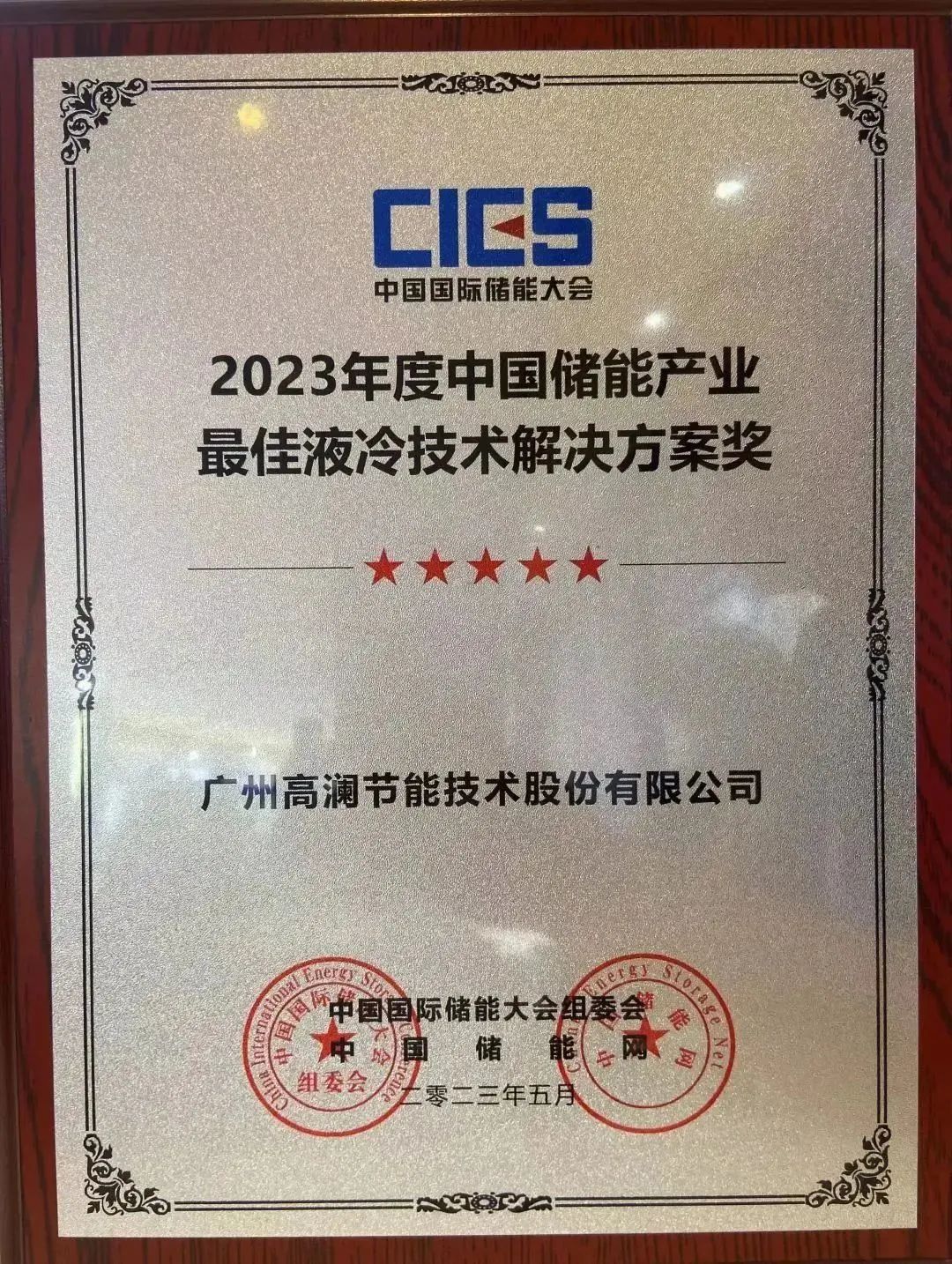 为了提高储能行业技术水平,高澜股份储能团队积极参与主办方安排的主旨演讲活动,听取圆桌论坛,与参会嘉宾共同研讨储能产业的现状和未来前景,展示高澜储能团队开拓创新的精神。在展会晚宴上,高澜股份收到由中国国际储能大会组委会和中国储能网颁发的2023年度中国储能产业最佳液冷技术解决方案奖,这是对高澜股份在储能液冷技术和服务的肯定。