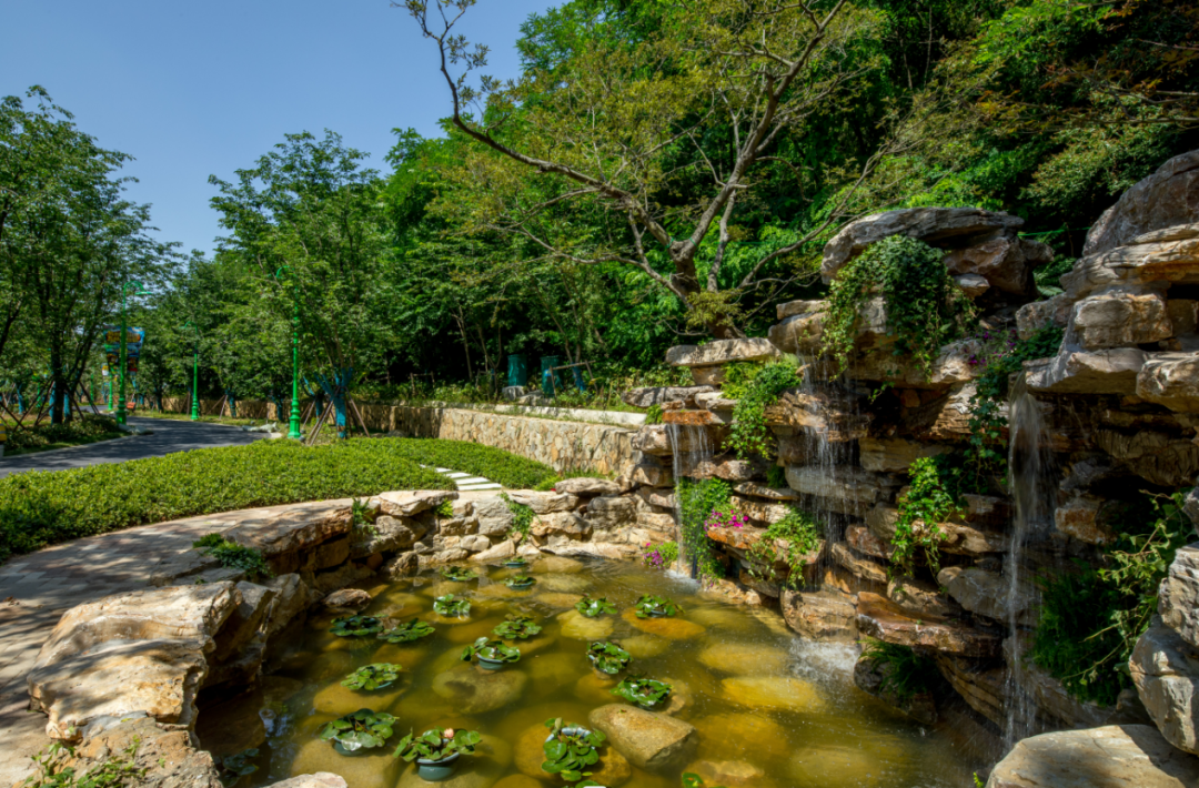 项目建设秉承自然积存、自然渗透、自然净化的设计理念,结合海绵技术运用在景观绿化中,打造生态型公园景观。遵循生态优先、功能完善、因地制宜的原则,采用源头削减、过程控制、末端处理等雨水综合管理的办法,探索多种“渗、蓄、滞、净、用、排”技术,设计技术措施海绵设施主要有透水铺装、植草沟、下凹绿地、生态湿塘、人工湿地、雨水花园、雨水收集池等,生物滞留设施相结合的方式连接雨水回用系统,为后期乐园维护用水提供保障。