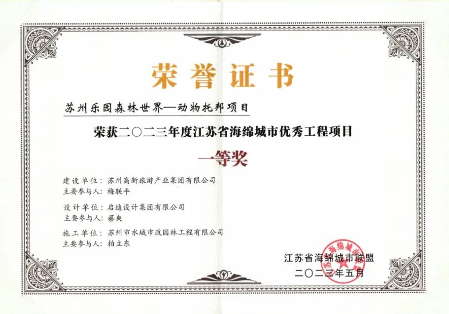 5月12日,2023年江苏省海绵城市联盟年会暨海绵城市高质量发展论坛在南京举行,启迪设计集团“苏州乐园森林世界-动物托邦项目”荣获2023年度江苏省海绵城市优秀工程项目一等奖。