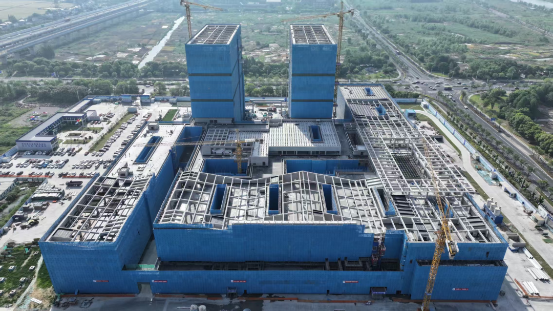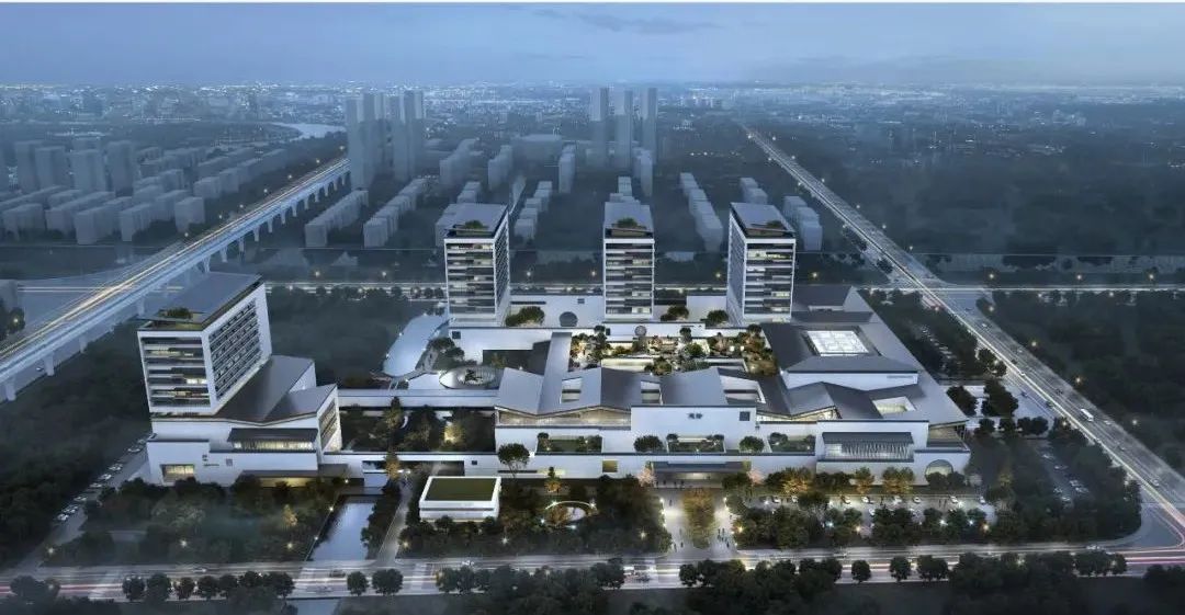 项目定位为集医疗、教学、科研、保健、康复为一体的三级甲等综合性中医医院,占地约10.6万平方米,总建筑面积达29万平方米。设计以园林中的医院为设计理念,造型从江南传统建筑特色中汲取灵感,整体色彩选用灰白色为主色调,通过连续起伏的坡屋面,以及山墙面多层次的虚实对比,将传统建筑语汇用现代抽象的设计手法进行重塑。目前项目已完成主体结构封顶,正进行室内外墙体和管线施工。
