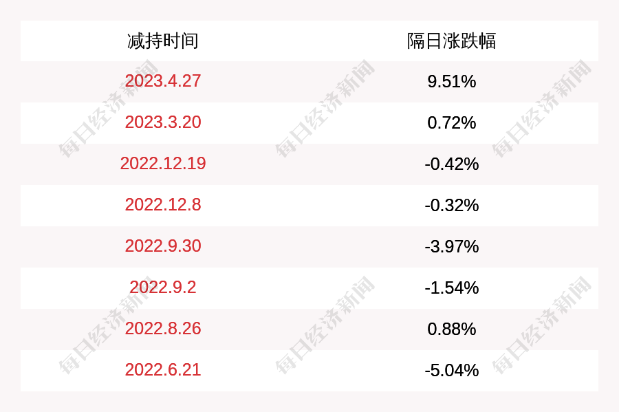 3.新易盛上次发布减持公告是2023年04月27日,第二个交易日上涨9.51%,新易盛近一年共发布9次减持类公告。