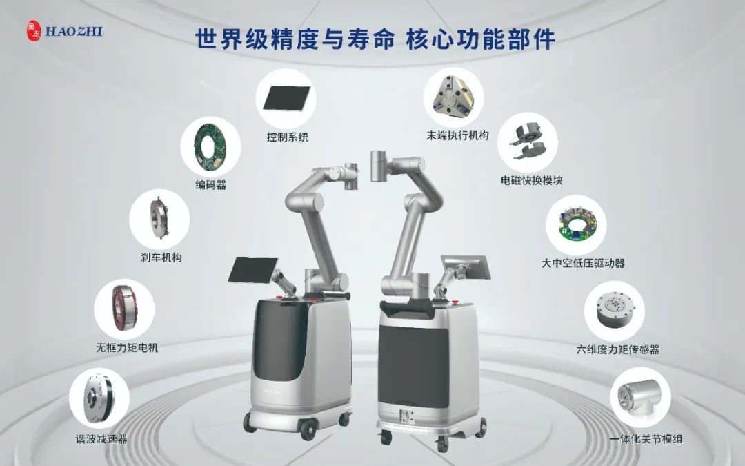 雷群总经理介绍了昊志机电在机器人领域的布局和发展。他表示,公司于2014 年进入机器人领域。利用企业精密加工制造和研发优势,相继攻克了机器人高性能谐波减速器、高精度编码器、一体化关节模组、无框力矩电机、六维力传感器、大中空低压驱动器、机器人末端执行机构、控制系统等一系列核心功能部件,实现了机器人领域横向一体化发展和核心功能部件全部国产化。同时,公司还协助客户推出了业内领先的按摩机器人等产品,并积极拓展应用场景,加快核心功能部件在具身智能机器人上的批量应用,为推动机器人产业的发展作出积极贡献。