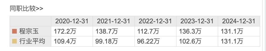 *ST名家董事长兼总裁由程宗玉担任,现年55岁。东方财富数据显示,2020年至2024年,程宗玉薪酬分别为172.2万元、138.7万元、112.7万元、136.3万元、131.1万元。