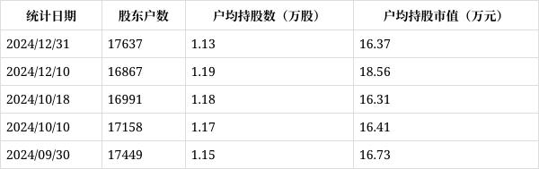 从1月3日公开信息显示,友讯达截至2024年12月31日公司股东户数为1.76万户,较上期(2024年12月10日)增加48户,增幅为0.27%,变化不大。