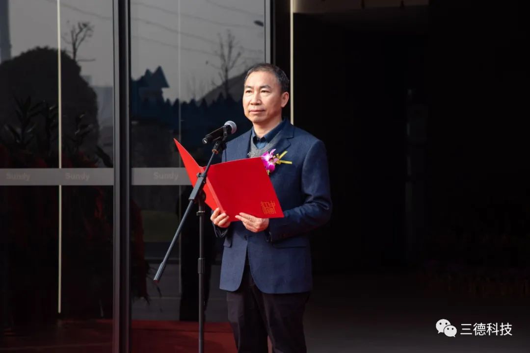 仪式伊始,董事长朱先德先生发表致辞。致辞中,他首先代表公司向各个建设施工单位及为公司提供服务的合作伙伴致以感谢,并向制造体系同仁表示祝贺!他表示,三德科技长兴园区的落成和启用“恰逢其时”,及时化解了制造交付瓶颈,为自动化产品规模上量和市场突破以及分析仪器制造提供良好的硬件环境与场地支撑,其高标准的设计与品质,一如我们的产品,有实力、值得信赖!相信三德科技长兴园区的启用将发力带动三德乘势而上,倍道而进。