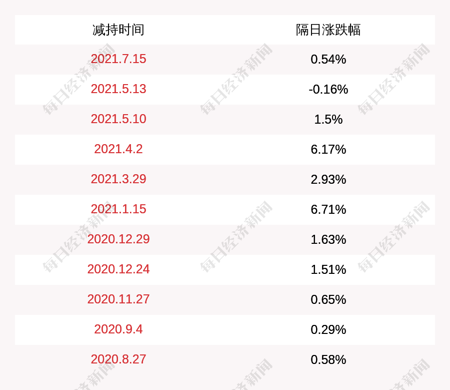 2.海波重科上次发布减持公告是2021年07月15日,第二个交易日上涨0.54%,海波重科近一年共发布12次减持类公告。更多关键信息,请搜索“道达号”。