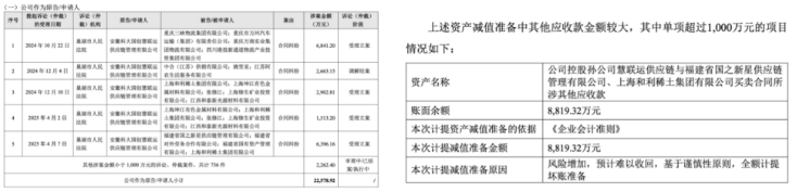 具体来看,2025年1月底,科大国创控股孙公司慧联运供应链与福建省国之新星供应链管理有限公司(以下简称ldquo;国之新星rdquo;)的应收款项6290万元发生逾期。随后在今年4月,慧联运供应链就买卖合同纠纷向法院提起诉讼,要求国之新星及其控股股东支付合同款项及违约金等共计6396.16万元,案件已获立案受理。