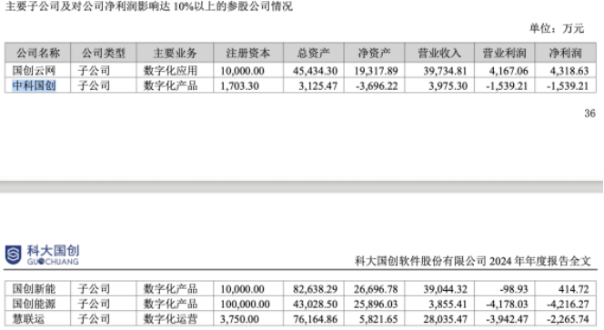 记者注意到,科大国创旗下负责数字化产品业务的三家公司中,有两家处于亏损状态。2024年,子公司中科国创、国创新能、国创能源实现净利润分别为-1539.21万元、414.72万元、-4216.27万元。