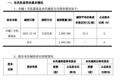 近日公司收到卓越1号私募基金的《简式权益变动报告书》,现将相关情况告知如下: