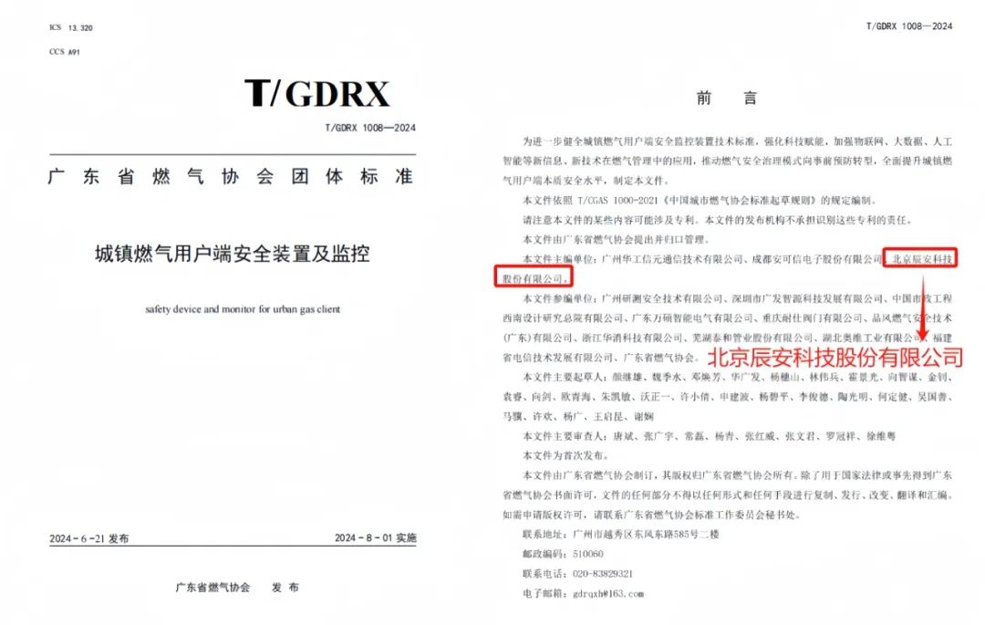 近日,广东省燃气协会发布通知,由辰安科技参与主编的团体标准《城镇燃气用户端安全装置及监控》(T/GDRX 1008-2024)正式发布。同时,广东省燃气协会为辰安科技颁发了广东省城镇燃气用户端安全产品推荐证书。