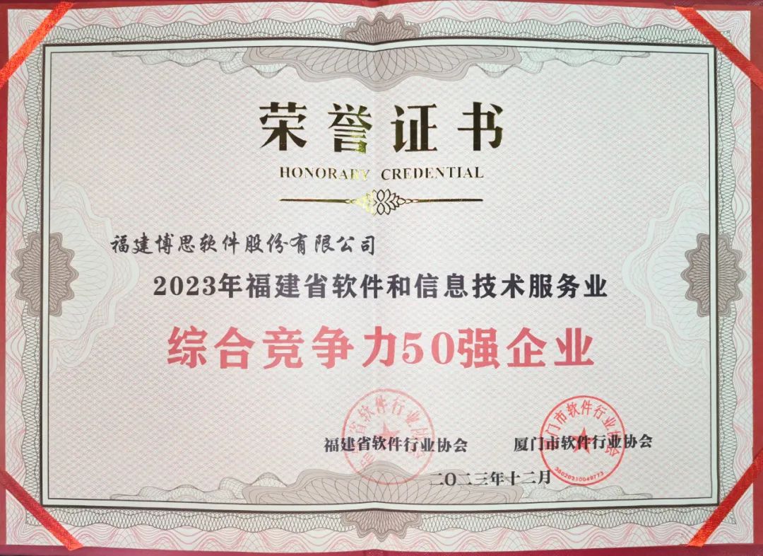 近日,福建省软件行业协会和厦门市软件行业协会发布了“2023年福建省软件和信息技术服务业综合竞争力50强企业”名单,博思软件凭借卓越实力再次上榜。
