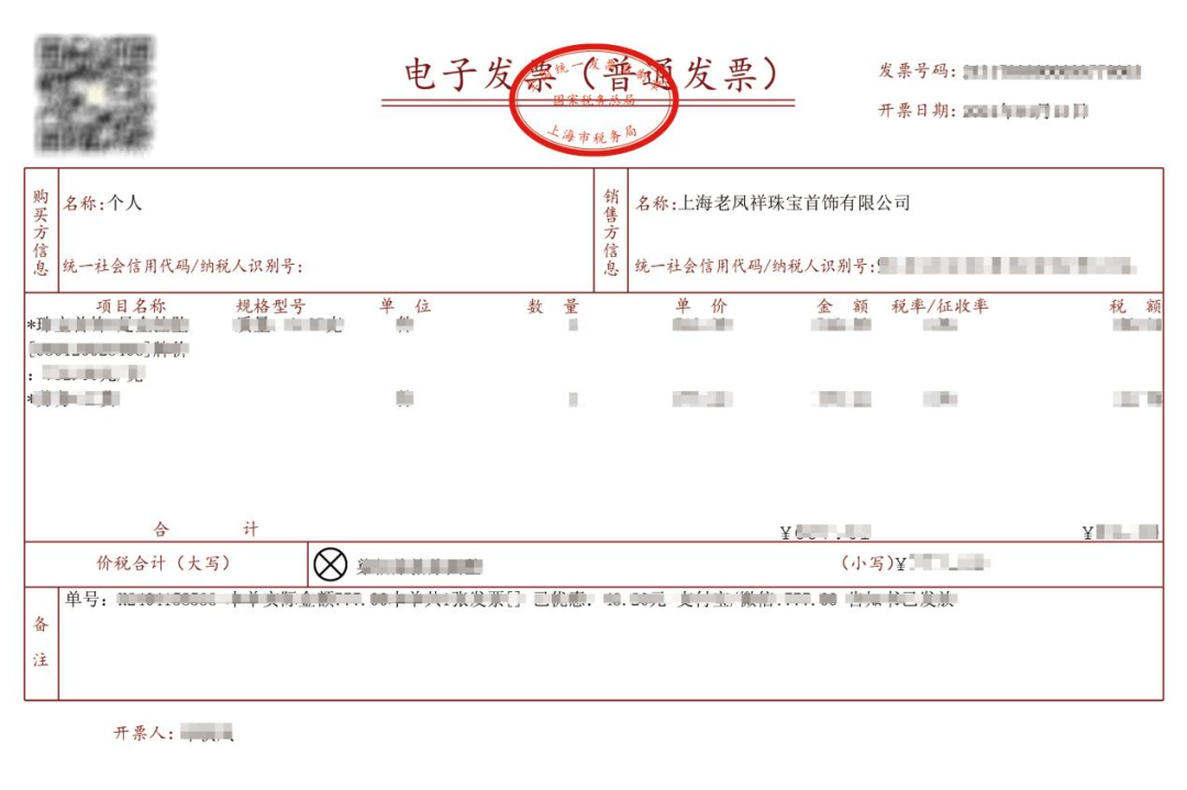 乐企数电票的成功开具,助力老凤祥实现集团财务共享平台建设,开启了通过申请单推送至税务管理平台智能开具数电票的新航程,标志着老凤祥在财税数智化升级上迈出重要一步,为企业财税数字化管理树立了新标杆。