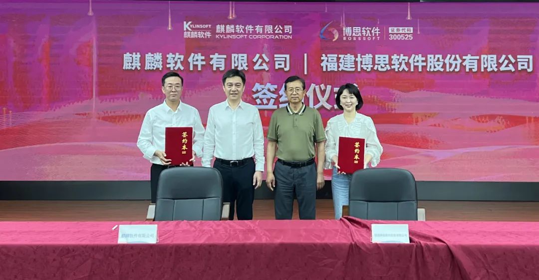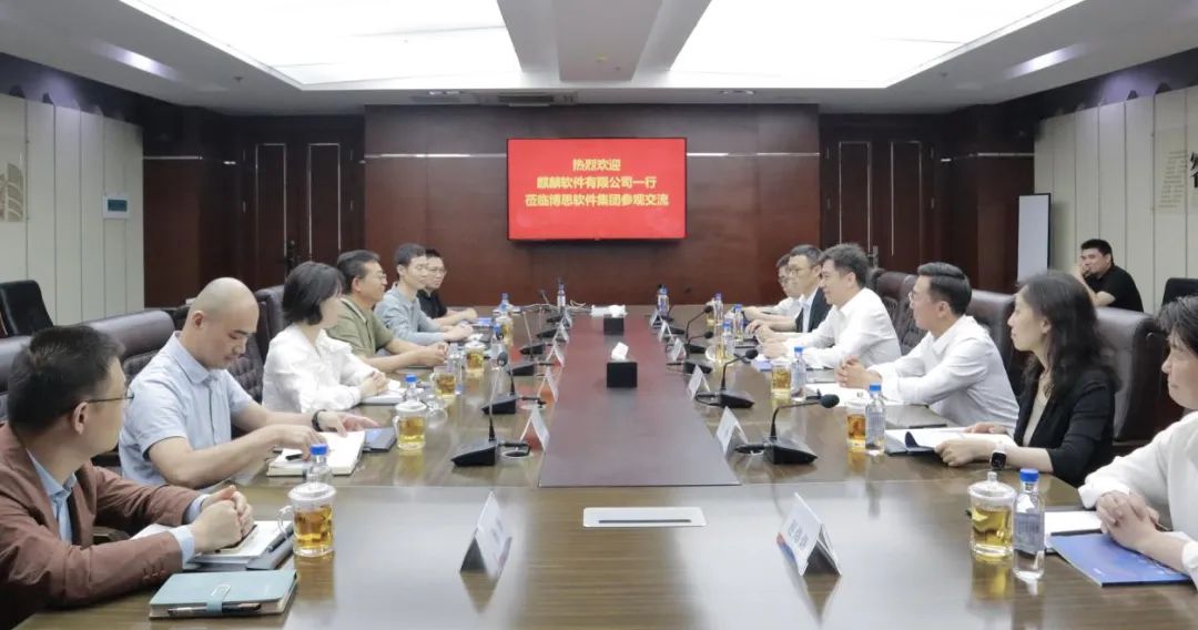 5月23日,麒麟软件有限公司高级副总经理谢文征一行莅临博思软件集团福州总部参观并进行战略合作协议签约。博思软件集团总裁刘少华、资深高级副总裁汪彦参加活动。
