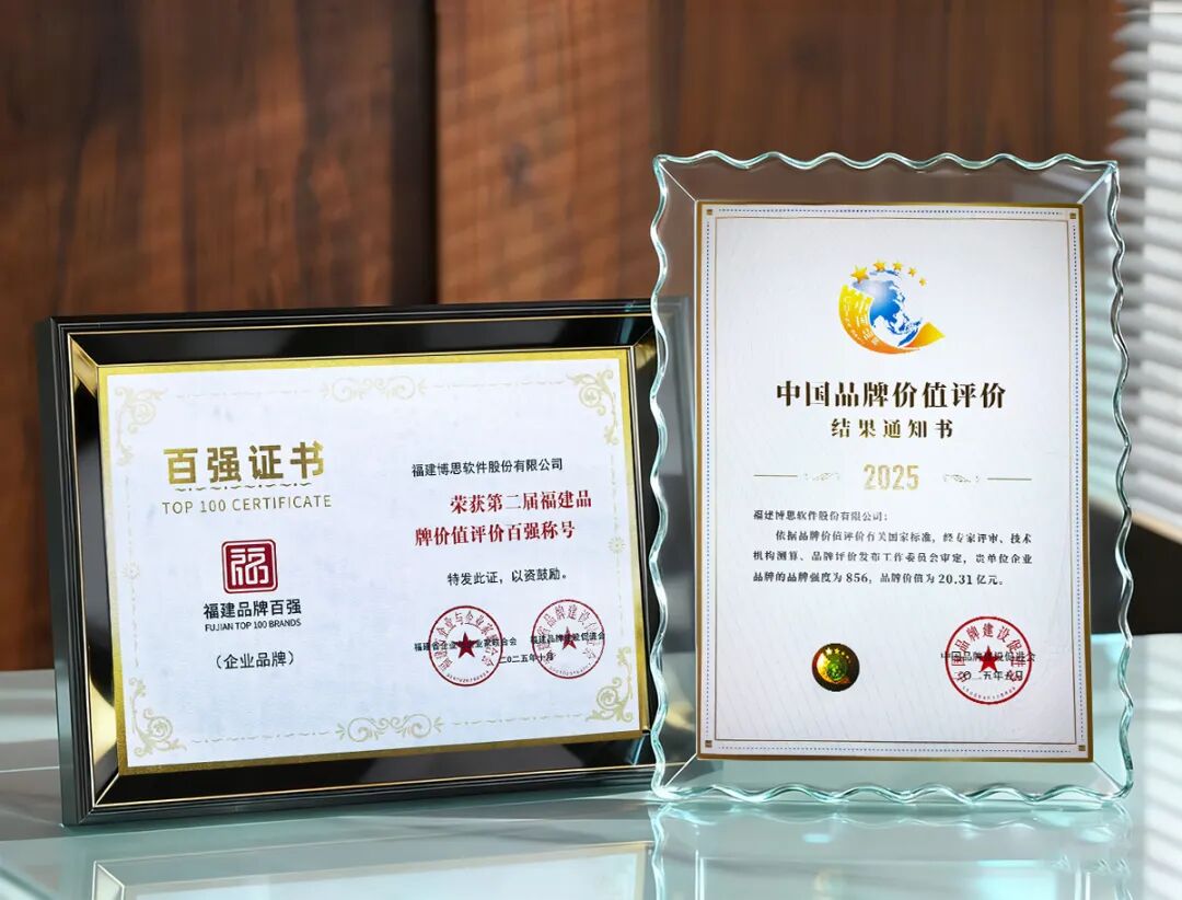10月15日,福建省品牌建设促进会、福建省企业与企业家联合会在南平市联合发布2025福建品牌价值评价信息,博思软件再度获评“福建品牌价值百强”。