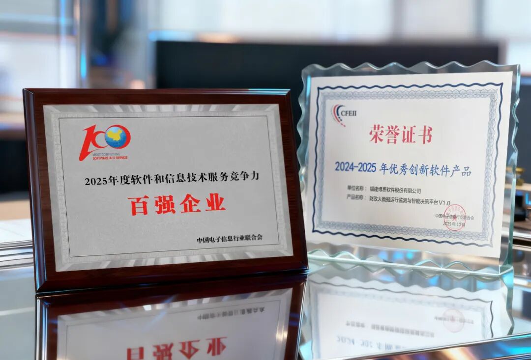 2025年10月15日,在第27届中国国际软件博览会(郑州)开幕式上,博思软件凭借卓越的综合实力与创新能力,成功蝉联“2025年度软件和信息技术服务竞争力百强企业”(简称“中国软件百强企业”), 排名从去年第 84 位提升至第 83 位。“财政大数据运行监测与智能决策平台V1.0”“阳光公采大模型智能咨询平台V2.0”“资产盘点云平台V1.0”同时入选“2024-2025年度优秀创新软件产品”。