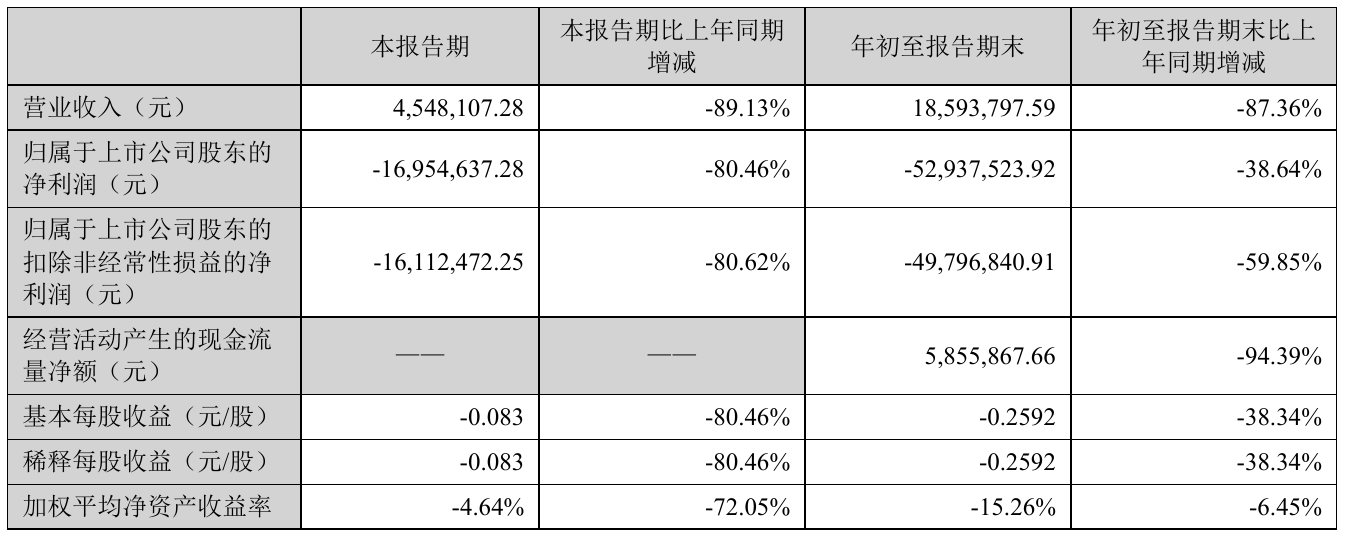 挖贝网10月28日,中潜股份(300526)近日发布2021年前三季度报告,报告期内营业收入18,593,797.59元,同比减少87.36%;亏损52,937,523.92元,同比亏损增加38.64%。