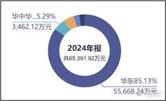 幸福蓝海是一家注册在南京的影视文化公司,生于华东立足于华东。2024年,公司85%以上的收入来自华东地区,其他地区业务十分有限,或许这也是其与《南京照相馆》缘分的起点。