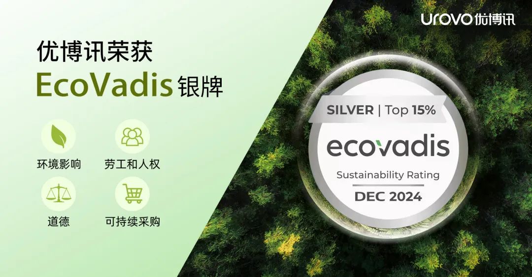 近日,优博讯在国际ESG评审机构EcoVadis的2024年度企业社会责任和可持续发展评审中脱颖而出,荣获EcoVadis银牌,标志着优博讯跻身全球参评企业的前15%,这一荣誉充分肯定了优博讯在环境、社会与治理(ESG)等方面的持续努力与显著成就。