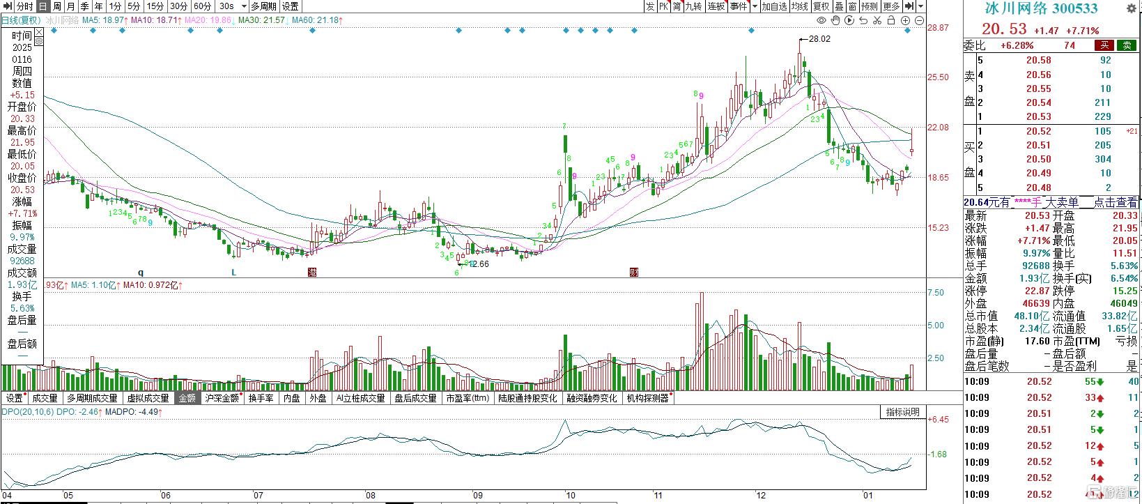 今日,冰川网络开盘大涨12%,最新报21.43元/股,总市值50.23亿元,近四个交易日累计涨超18%。