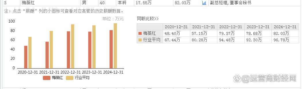通过整理历年年报可知,梅薇红2024年薪酬为82.03万元,较2023年的78.68万元上涨了3.35万元。