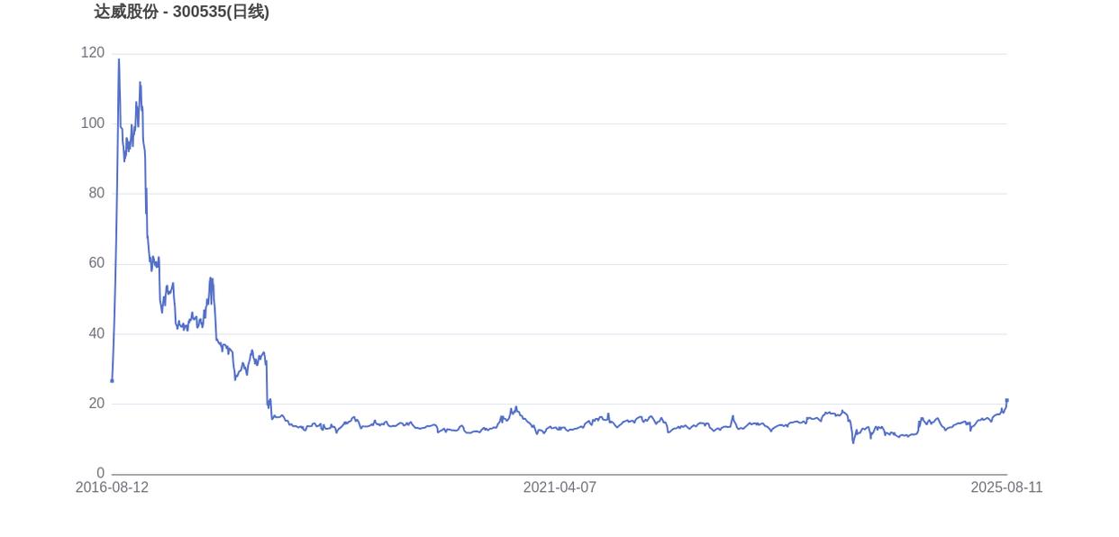 达威股份自2016年8月12日上市至今,已迎来9周年。从上市首日收盘价为26.64元、市值15.91亿元,到如今市值达到22.14亿元。