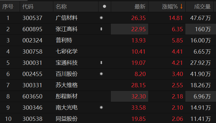 光刻胶板块走强 广信材料涨近15%