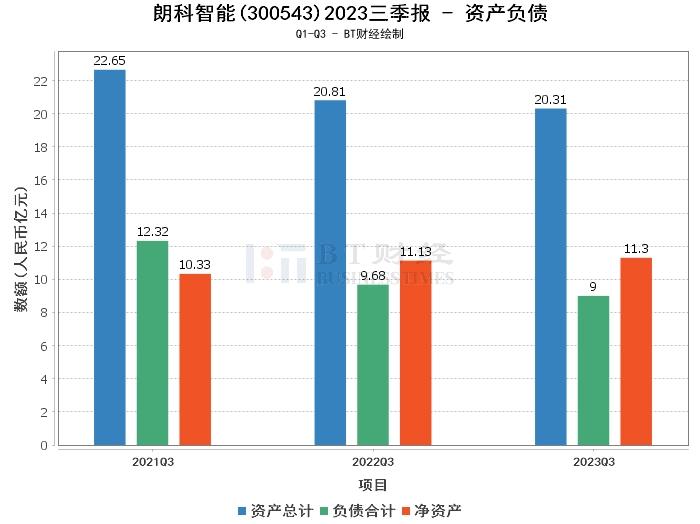 根据朗科智能2023年三季报,其资产总计为20.31亿元,较上年度末的20.86亿元略有下降。负债合计为9亿元,较上年度末的9.89亿元有所减少。净资产为11.3亿元,较上年度末的10.96亿元有所增长。资产负债率为44.35%,较上年度末的47.44%有所下降。这些数据表明,公司的负债总额在减少,净资产在增长,资产负债率在下降,显示出公司的财务状况在稳步改善。