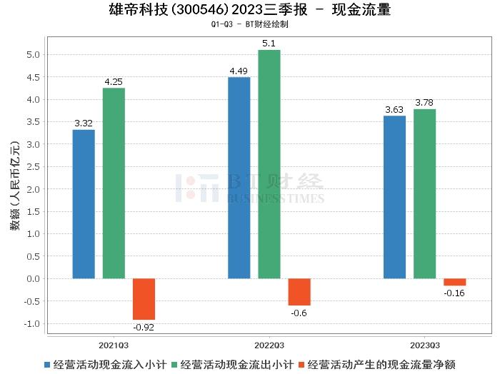 在现金流量方面,公司2023年三季度经营活动产生的现金流入为3.63亿元,较上年同期的4.49亿元减少。经营活动产生的现金流出为3.78亿元,较上年同期的5.1亿元减少。