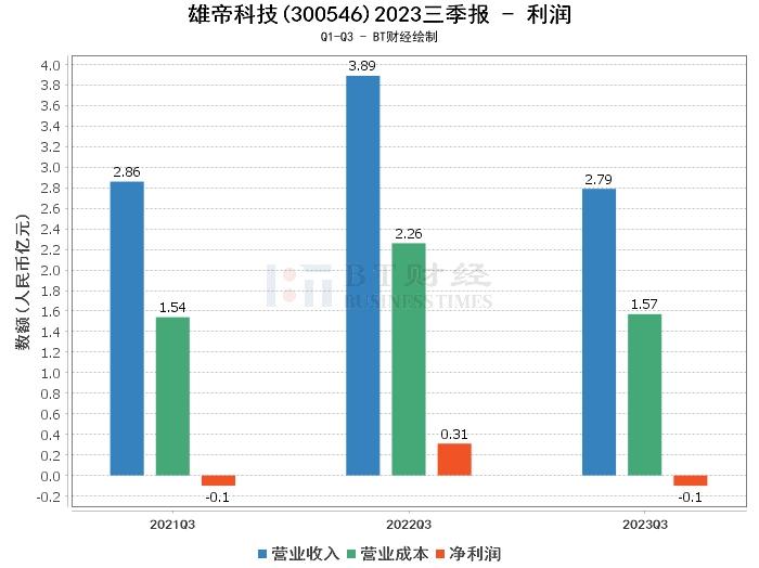 在利润方面,雄帝科技2023年三季度的营业收入为2.79亿元,较上年同期的3.89亿元减少。营业利润为-990.61万元,相较于上年同期的2960.77万元,公司在本期出现了亏损。净利润为-1028.17万元,同样出现亏损,与上年同期的3140.37万元相比,净利润下降明显。毛利率为43.54%,较上年同期的41.96%有所提高,但净利率为-3.69%,较上年同期的8.08%大幅下滑。