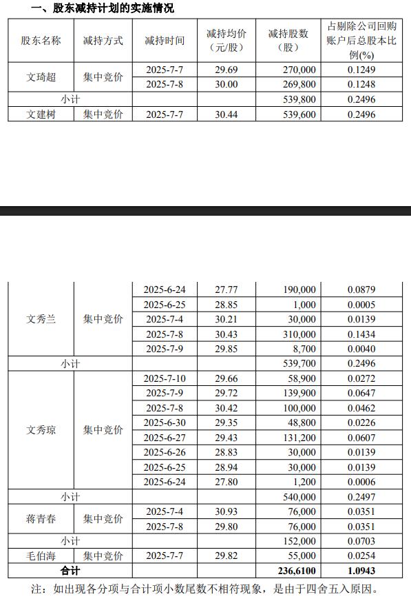 2025年9月9日,川环科技发布关于股东股份减持计划期限届满暨实施情况的公告。2025年6月24日至7月10日,公司股东文琦超、文建树、文秀兰、文秀琼、蒋青春、毛伯海共计减持股份236,6100股,套现金额为7070万元。