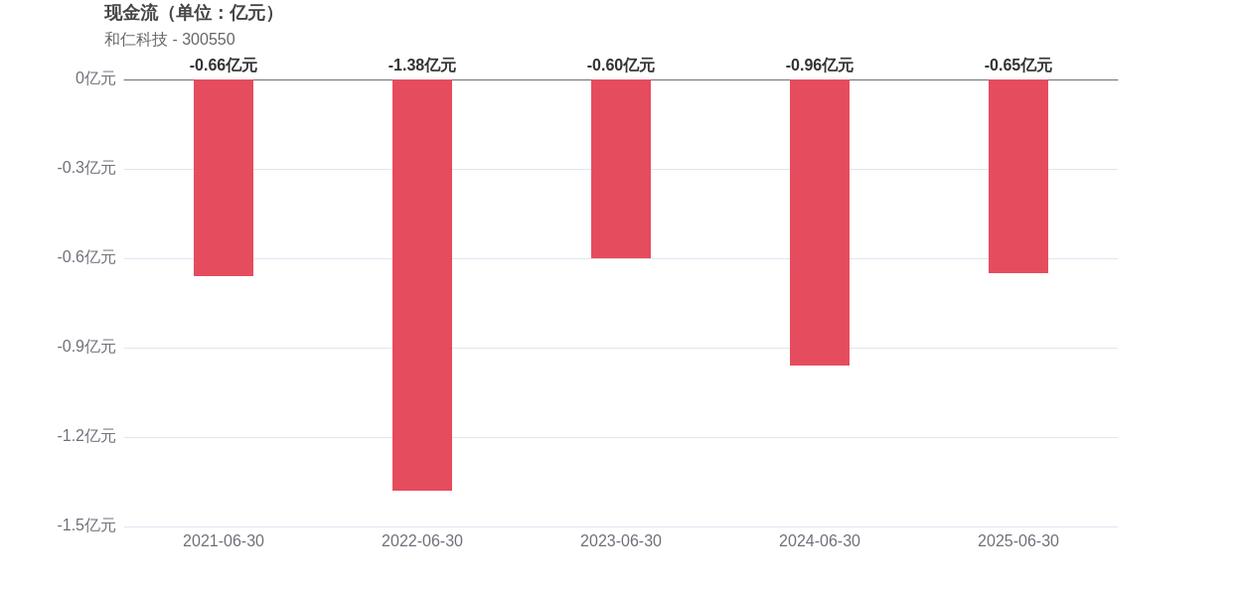 在经营稳健性方面,和仁科技面临现金流承压的挑战,经营活动产生的现金流净额为-0.65亿元,表明公司在经营过程中现金流出仍大于流入。此外,2025年上半年的资产负债率为22.87%,同比下降了2.37个百分点,这意味着公司债务负担有所减轻。