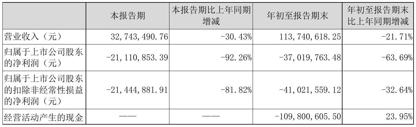 10月28日,古鳌科技(300551)近日发布2021年前三季度报告,报告期内营业收入113,740,618.25元,同比减少21.71%;亏损37,019,763.48元,同比亏损增加63.69%。