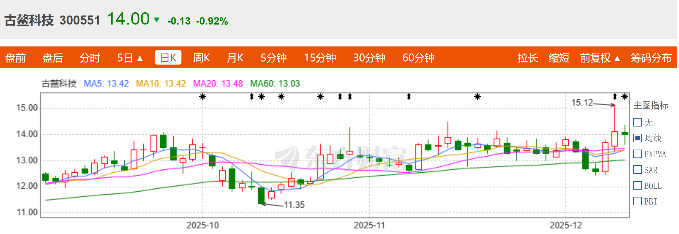 此外, 古鳌科技 发布定增预案,公司拟向特定对象发行股票数量不超过4000万股(含本数),发行价格为10.8元/股。此次发行拟募集不超过4.32亿元,扣除发行费用后,全部用于补充流动资金,此次发行对象为徐迎辉。值得关注的是,截至2025年12月16日收盘, 古鳌科技 股价报收14元/股。