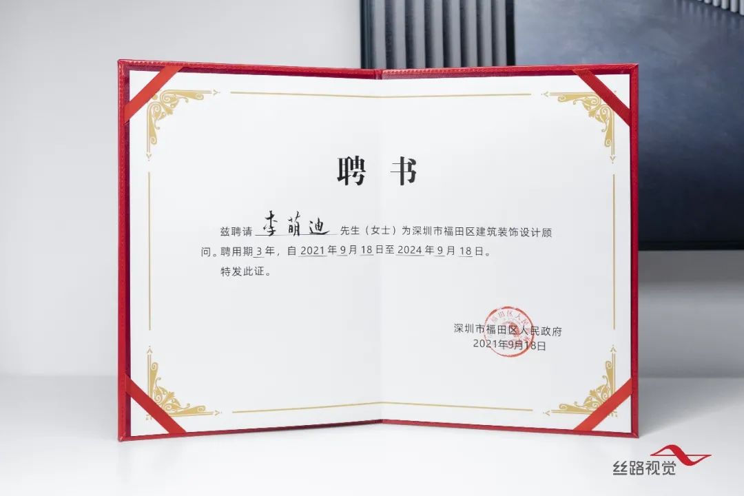 丝路视觉科技股份有限公司董事长李萌迪先生,不仅荣获「2020年度中国十大杰出建筑装饰设计师」称号,更是被聘为深圳市福田区的建筑装饰设计顾问。