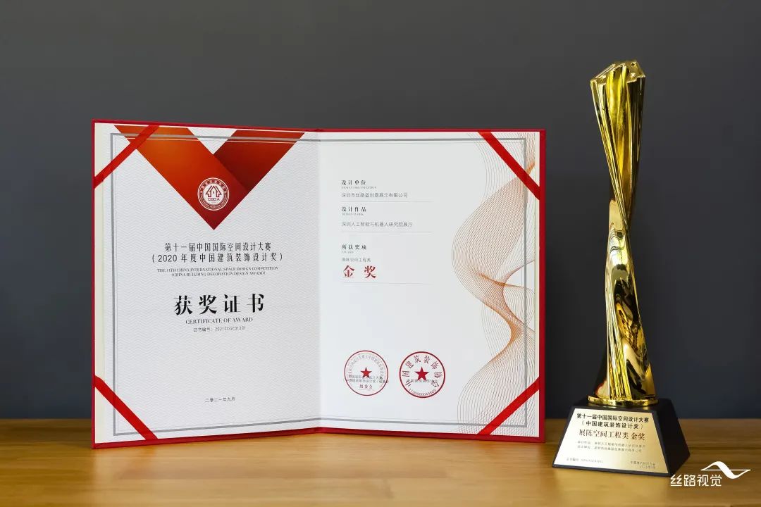丝路视觉作品「深圳人工智能与机器人研究院」、「东莞深投控清溪科创展示中心」一举摘下1金1银!丝路视觉科技股份有限公司董事长李萌迪先生荣获「2020年度中国十大杰出建筑装饰设计师」称号。