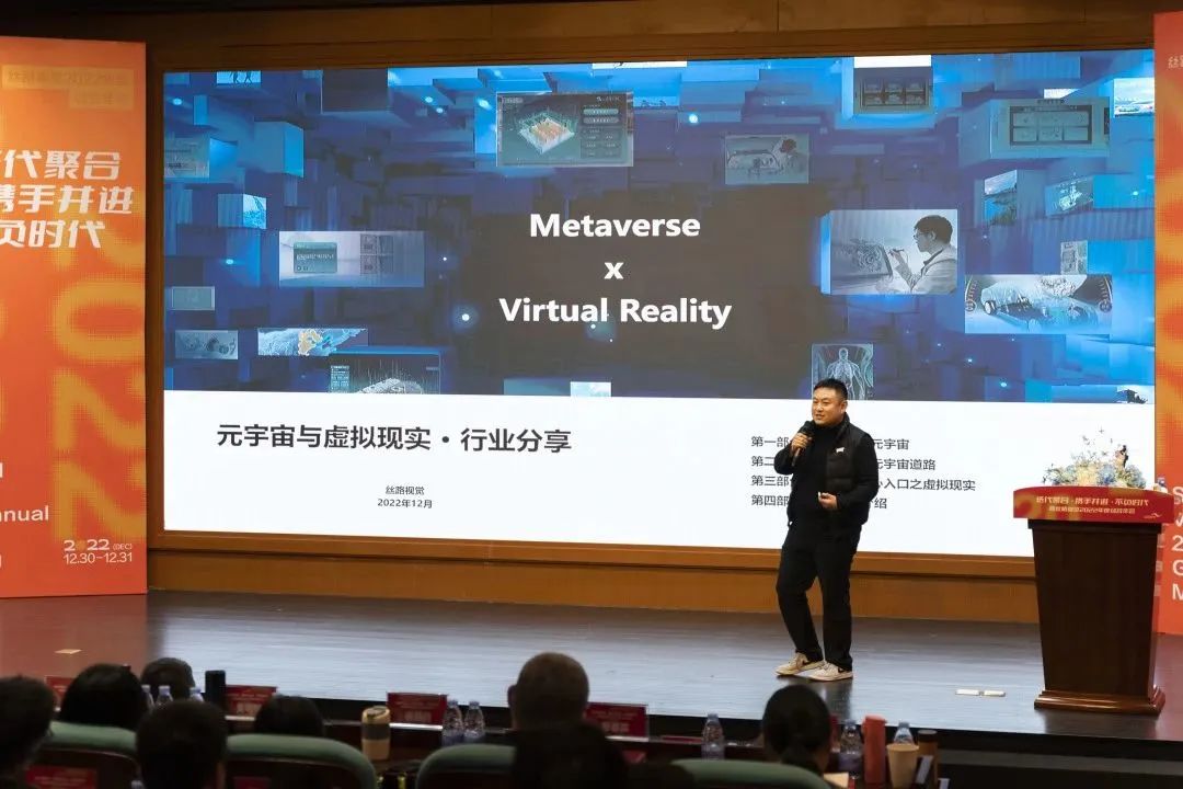 丝路视觉副总裁、丝路视觉旗下专业元宇宙XR开发团队丝路视创总经理岳峰以丝路视创项目为基点作出“元宇宙与虚拟现实”主题分享,全面解析国内外元宇宙行业,并对未来虚拟现实的应用与发展作出解读。